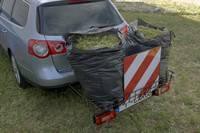 De acuerdo con lo previsto en el apartado 6 del articulo 15 del Reglamento General de Circulación, la carga que sobresalga por detrás de los vehículos deberá ser señalizada por medio de la señal v-20.